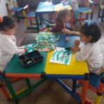Através da pintura as crianças descobrem um mundo cheio de cores, formas, linhas e sentimentos, imaginação e simbolizam as experiências. A pintura estimula a comunicação, criatividade, sensibilidade e aumenta a capacidade de concentração e expressão das crianças. Pintura a dedo, me divertir e melhorar o seu sentido do tato, sua imaginação e desenvolver a sua coordenação e sua criatividade.